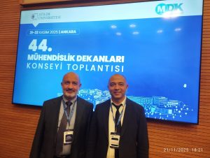 Fakültemiz Dekanı Prof. Dr. İsmail ZORLUER ve Dekan Yardımcısı Dr. Öğr. Üyesi Sadık KAĞA 21–22 Kasım 2025 tarihlerinde Atılım Üniversitesi’nin ev sahipliğinde düzenlenen 44. Mühendislik Dekanları Konseyi (MDK) Toplantısına katıldılar.